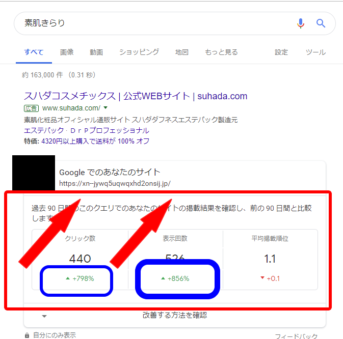 サイト設計を綿密に練り綿密な競合サイトをリサーチしたうえで記事を作成している結果です。